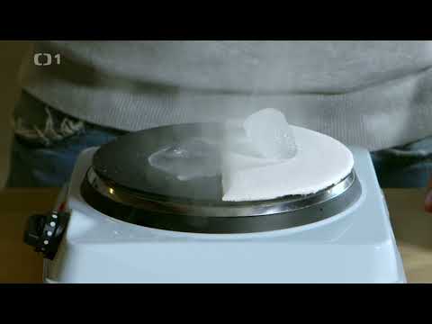 Termoizolační nátěrová hmoty THRcoating ALPHA TEMPER, ukázka rozpuštění ledové kostky na plotýnce, bílá plocha ALPHA TEMPER, plotýnka o teplotě cca 450 °C.
